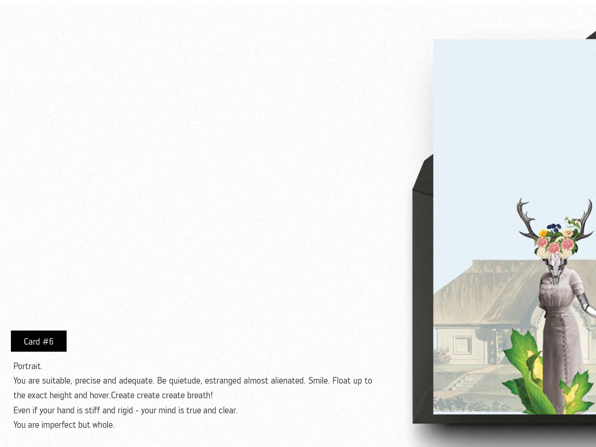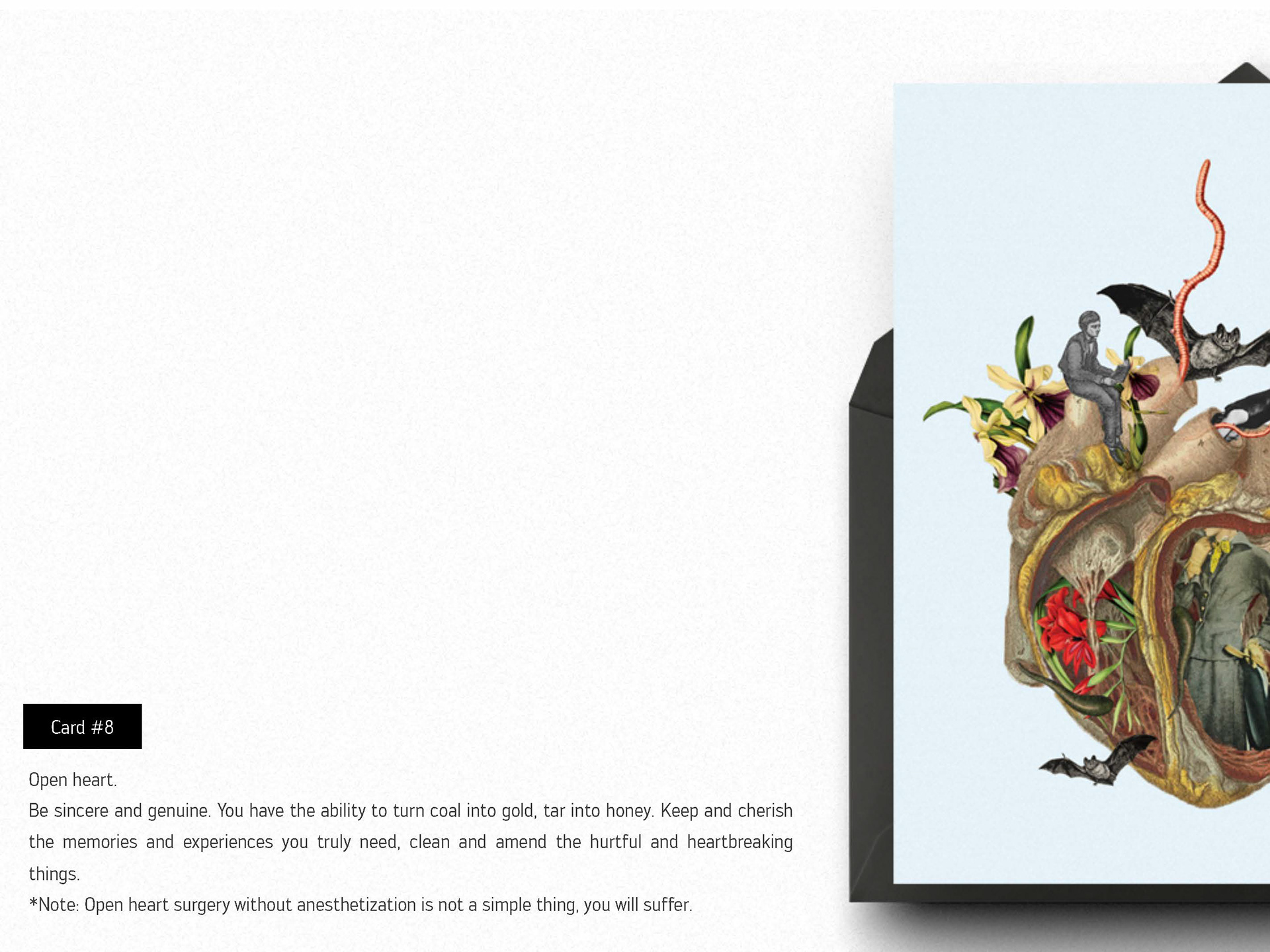 The Native Americans believed that a camera is capable of capturing a person’s soul. I tend to agree. I feel very uncomfortable having my picture taken. In our days, selling perfection through filters is part of our daily routine and business marketing. And to that, we expect immediate feedback and positive reassurances. I couldn’t help but wonder if a selfie presentation can be genuine, emotional, exposing, and one that shows an X-ray vision that is not necessarily beautiful. Very much similar to my personal experience when having my picture taken and like the Native American belief - I wish to present the soul through images. The main obstacle in the creation process was me: The fear to express that inner me, the fear of publishing it to the world to see and judge, and then the absurd fear of knowing what the people’s verdict will be. Can it be accepted? Will it be appreciated? The responses I received were wonderful and intriguing, even though the desire for beauty is human and understandable. I used already-existing images and rough cuts to create something new-like turning existing letters into new sentences. I chose to use antique anatomic illustration to express and emphasize the inner layer peeling and the pain with it, and finally surrendering to the exposure. I chose flower illustrations as a motif of ideas and the inner world. The deer horns represent the differ feeling from society and the mainstream, while at the same time having the ability to attack for protection. Yet another controversial decision- I chose to use both sexes as a presentation of my personality since I believe that I have both softness and roughness in me. I published the series in steps of revealing, peeling layers, and nourishing the public responses. The first step/ collage, “Watching”, was cautious and external, and with time it became more and more personal and profound, until the last step- “Creation” that speaks about the place from which I create. The feedback changed as the aesthetics did. People asked to have their first collages as wall art, posters, and framed postcards, and as the process progressed, the reactions became more private and very intense. The most powerful moment after releasing “Open Heart” was a random encounter with a writer who told me that “Selfie_sh” inspire him to write. At that point, I decided to hand out prints of Selfie_sh.